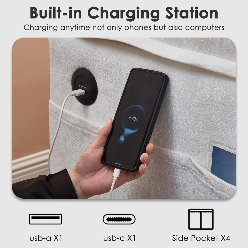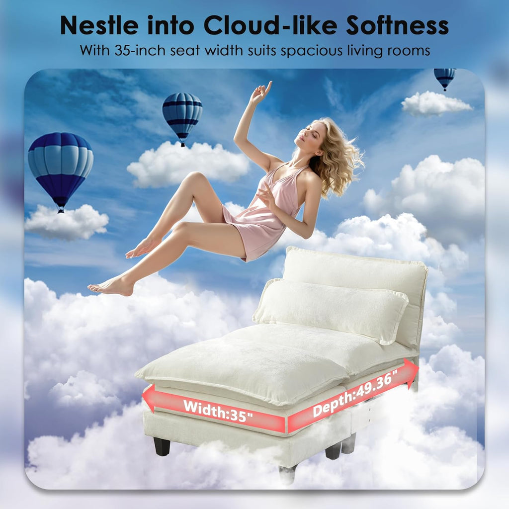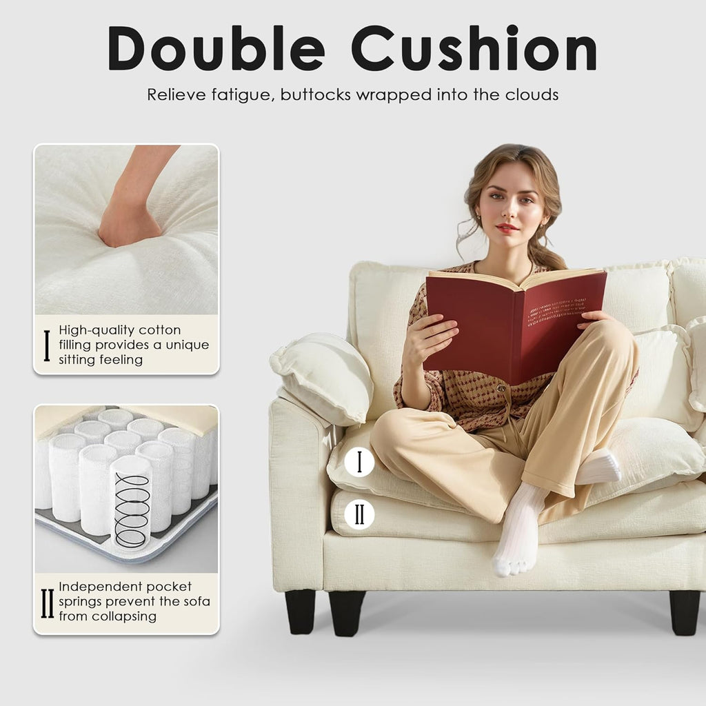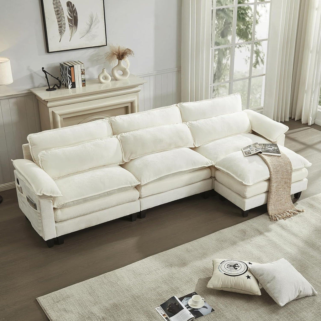 117'' Cloud Couch Sectional with L Shape Ottoman, Couches for Living Room with Chenille Fabric|USB Charging| Reversible Chaise|Throw Pillows| Dual Cushions Modern Sofa, Beige